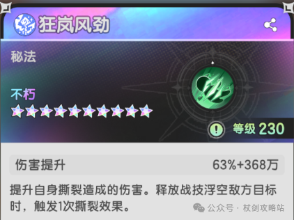 狂岚风劲:看起来很好的技能,增加撕裂伤害的同时,还可以在浮空时额外触发撕裂。如果秘法格子有八个,我不挑你的理,但是四个秘法格子的情况下,只能说还是很难上场。