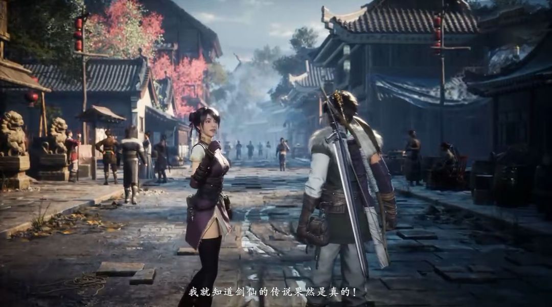 现在有了UE5引擎,青鸾峰的草木纹理清晰可辨,寿阳城的建筑也错落有致,市井的人声和光影效果,让古风的沉浸感很强。