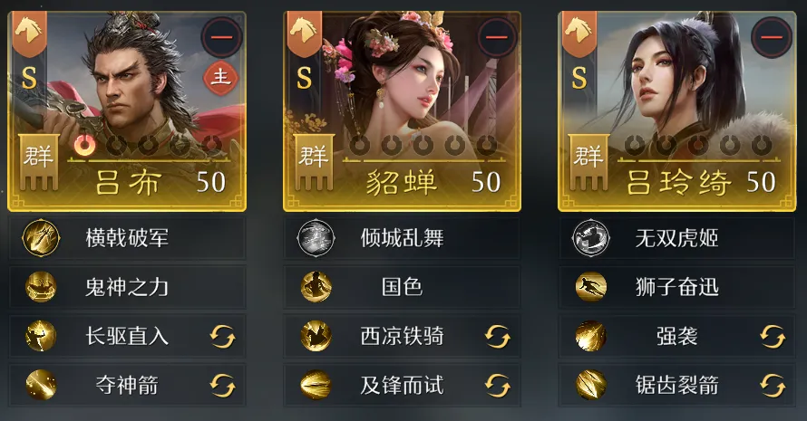 主要技能以增强战斗能力和获得兵力粮草为主,能够提高队伍的持续作战能力,适合享受战斗的战狂大佬。