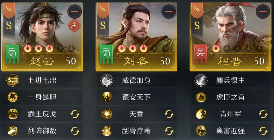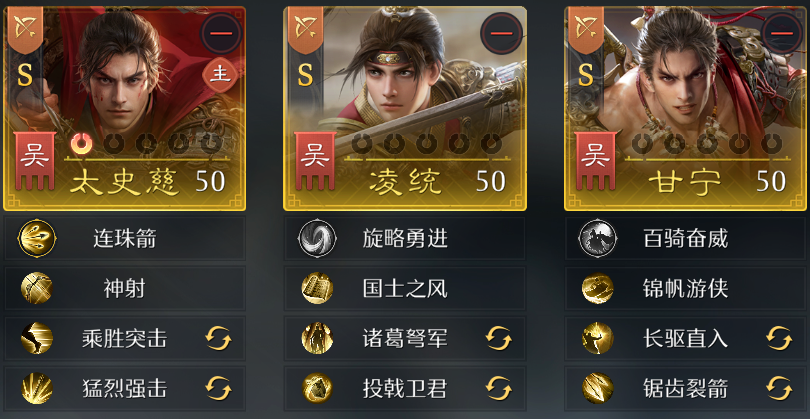 部分借助【王道镜】达到3星的武将能够提供额外的团队增益,比如刘备的群体增伤10%、孙权发动主将技后全体减伤30%等。