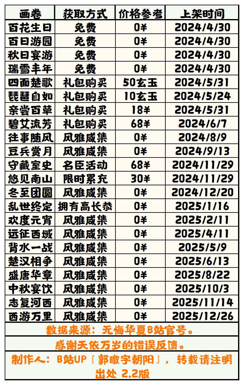【无悔华夏】画卷获取方法表 2.2