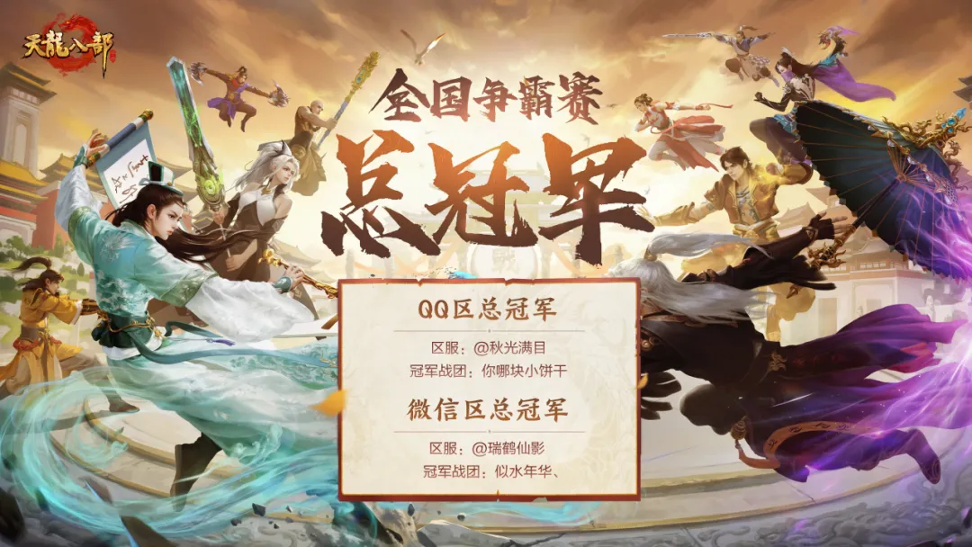 让我们再次祝贺【你哪块小饼干】和【似水年华、】,愿他们的光芒照亮更多侠客的前行之路。未来的天龙江湖,必将因这些英雄而更加精彩!冠军精神,永不止步——这,就是我们的江湖传奇。
