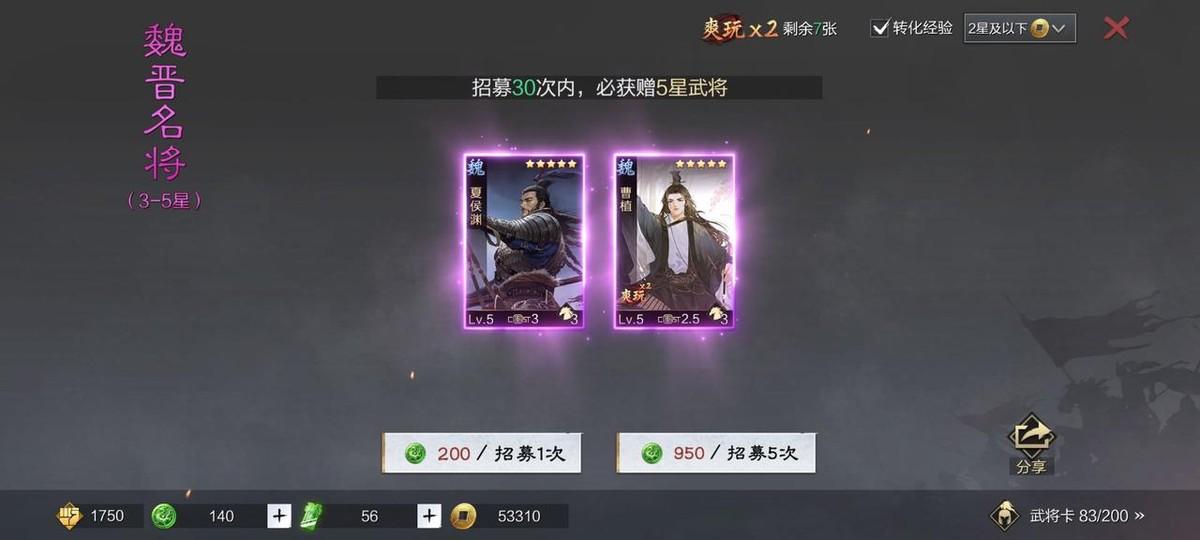 最直观的改变在于爽玩服五星“抽一送一”的体验。在名将卡包中抽到前10个五星武将时,每抽一张都会额外赠送一张同卡包五星武将。这直接击碎了老玩家常调侃的“菜刀队没曹操、蜀步队缺刘备、永远三缺一”的魔咒,阵容成型速度直接翻倍。