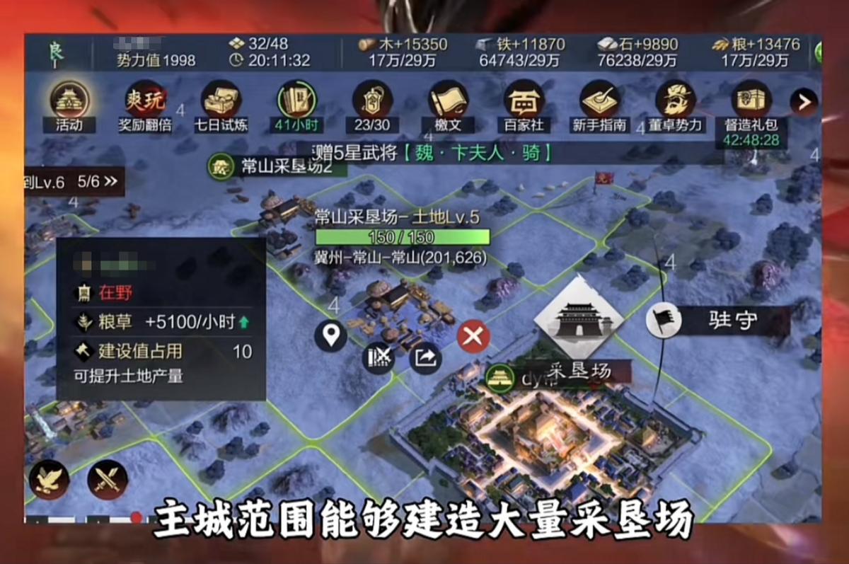 配合阵容成型,资源获取也迎来了全面暴涨。土地产量、税收、演武奖励、战法经验……几乎所有渠道的产出都成了双倍快乐。有零氪玩家实测,落地仅半小时就能开5级地,这种发育速度在传统服务器里简直不可想象。发育快了,打仗的节奏自然也大幅提速。原本让人焦虑的300、500格行军距离限制被直接移除,跨州远征说走就走;同时,城内外建筑升级时间减半,征兵速度提升25%,赛季时长也缩到30天内,彻底告别了“龟速行军”和漫长的等待期。