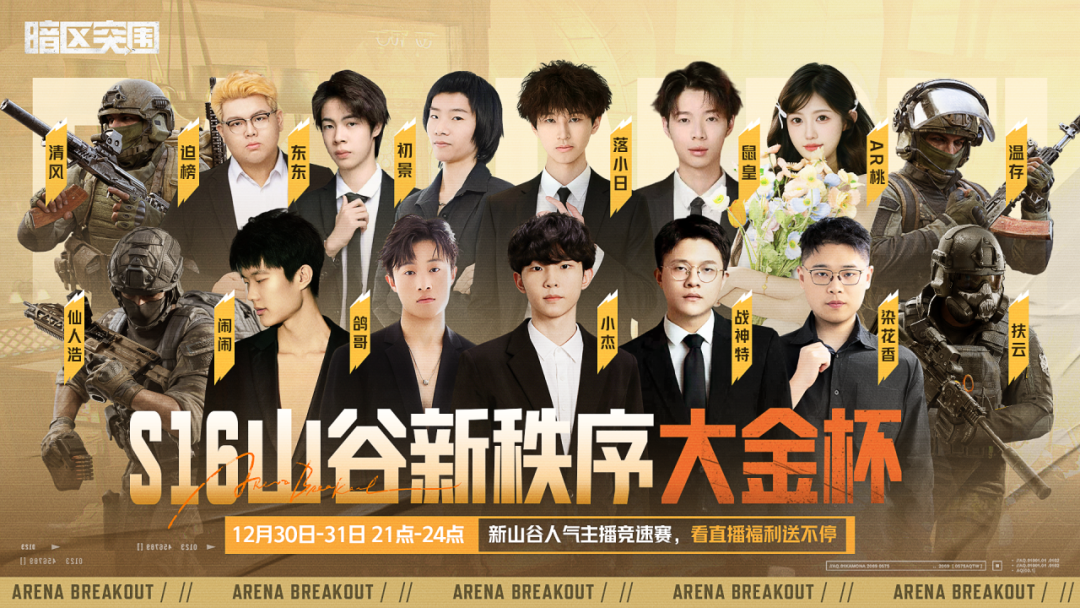 12月30日-31日:暗区人气主播集结,冲击【山谷新秩序大金杯】冠军!S16 全新山谷地图首秀 + 资源争夺、心跳撤离的生存对抗,“战场战火”直接拉满!