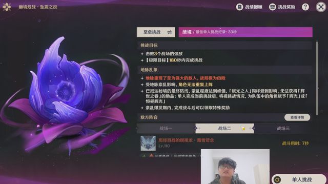 说罢,我打开了她的幽静危战,绝境难度33秒,好家伙,她打三间的时间,还没有人家打一间的时间多,一路12s,二路7s,三路14s。