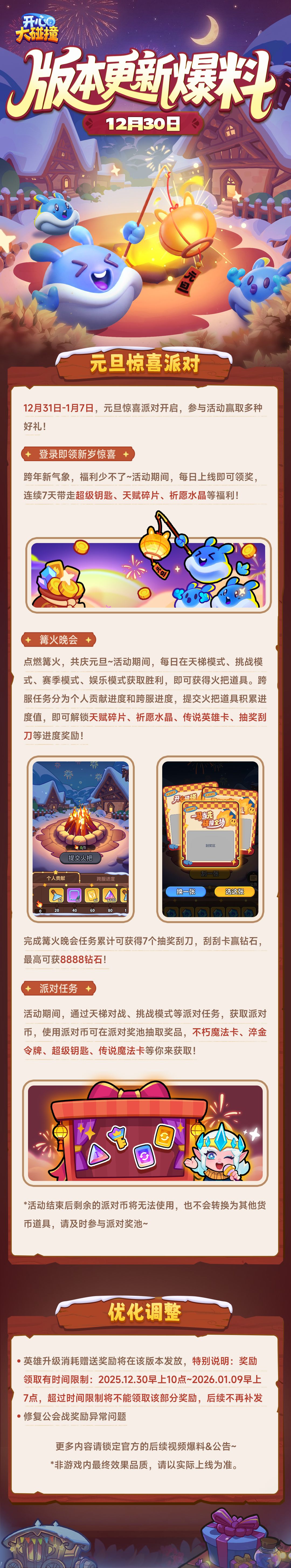 进行不停服闪断更新优化。元旦派对活动将于12月31日开启,参与活动赢取