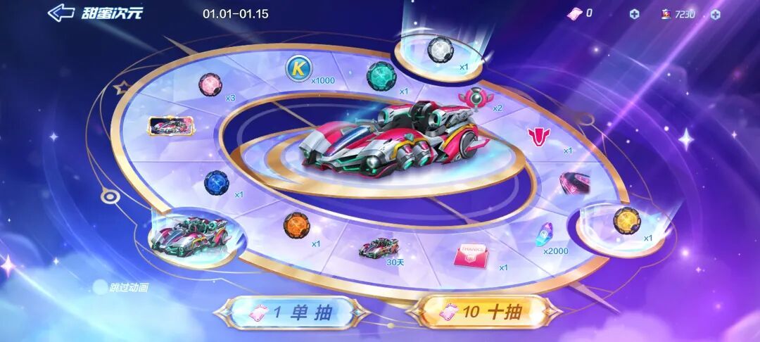 活动开启后,车友们点击主界面右上角的【甜蜜次元】即可进入活动界面,消耗甜蜜次元晶芯可以参与抽奖,除大奖新车外,还有【X-自由棉花糖印迹】、【X-自由棉花糖车牌】、【X-自由棉花糖气球】、多色能源等好礼待你抽取!