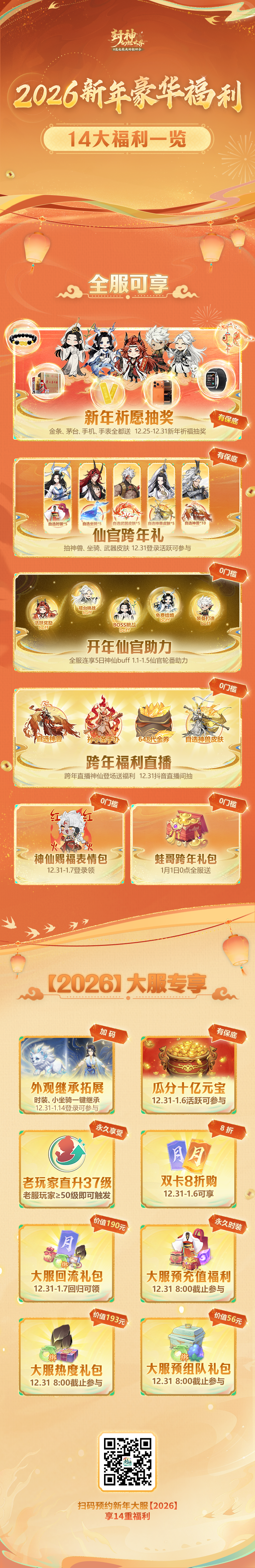 温馨提示!新年大服【2026】预约倒计时2天!12月31日9:00就要正式开服啦~