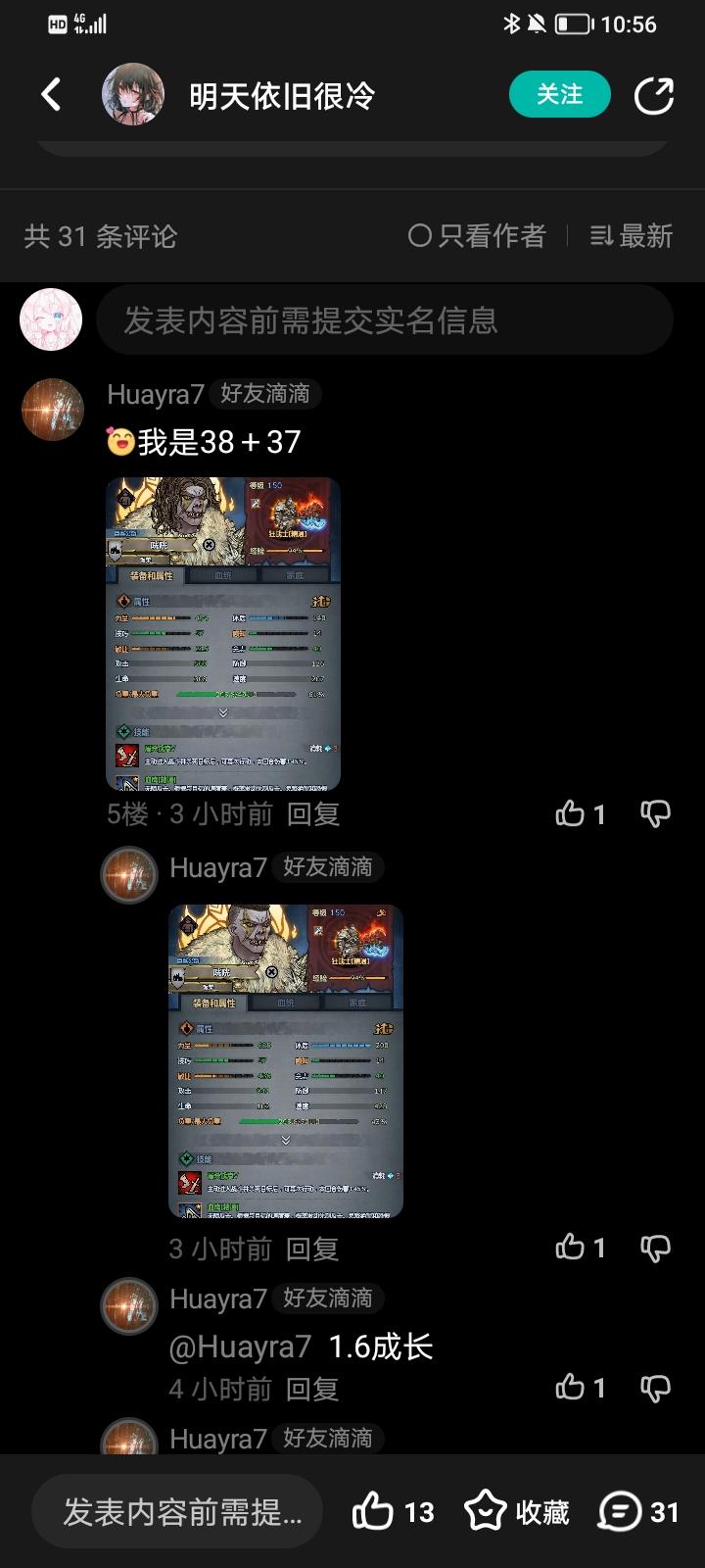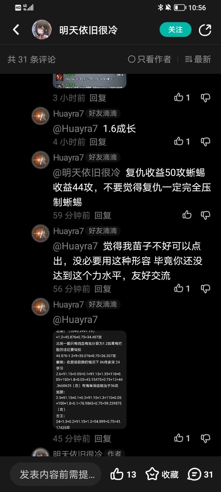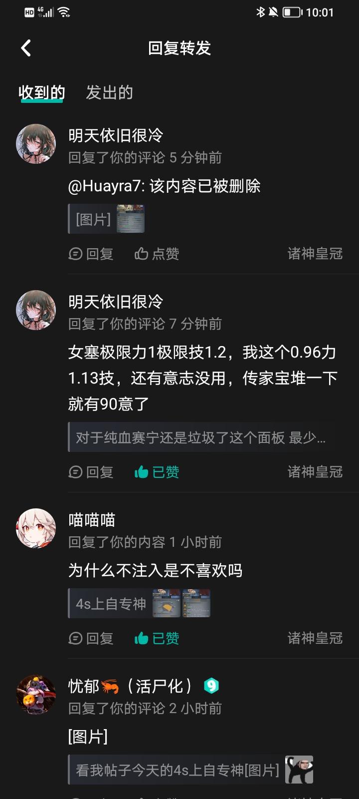 第二个帖子是他的1.5力女鲨蜥满800力的图 我在下面评论了一张我自己的鲨复神子图 两人力量差距为个位数 图2中他删除的评论内容为:鲨复能和鲨蜥差不多,你的苗子也是很废物了 我看到这句话那我确实是认可的 毕竟多了0.1力成长神特还是混血的
