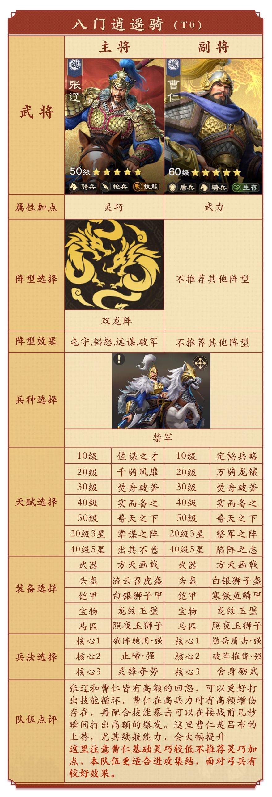 · 骑兵系:点出进阶技能,配合张辽曹仁的八门逍遥骑;