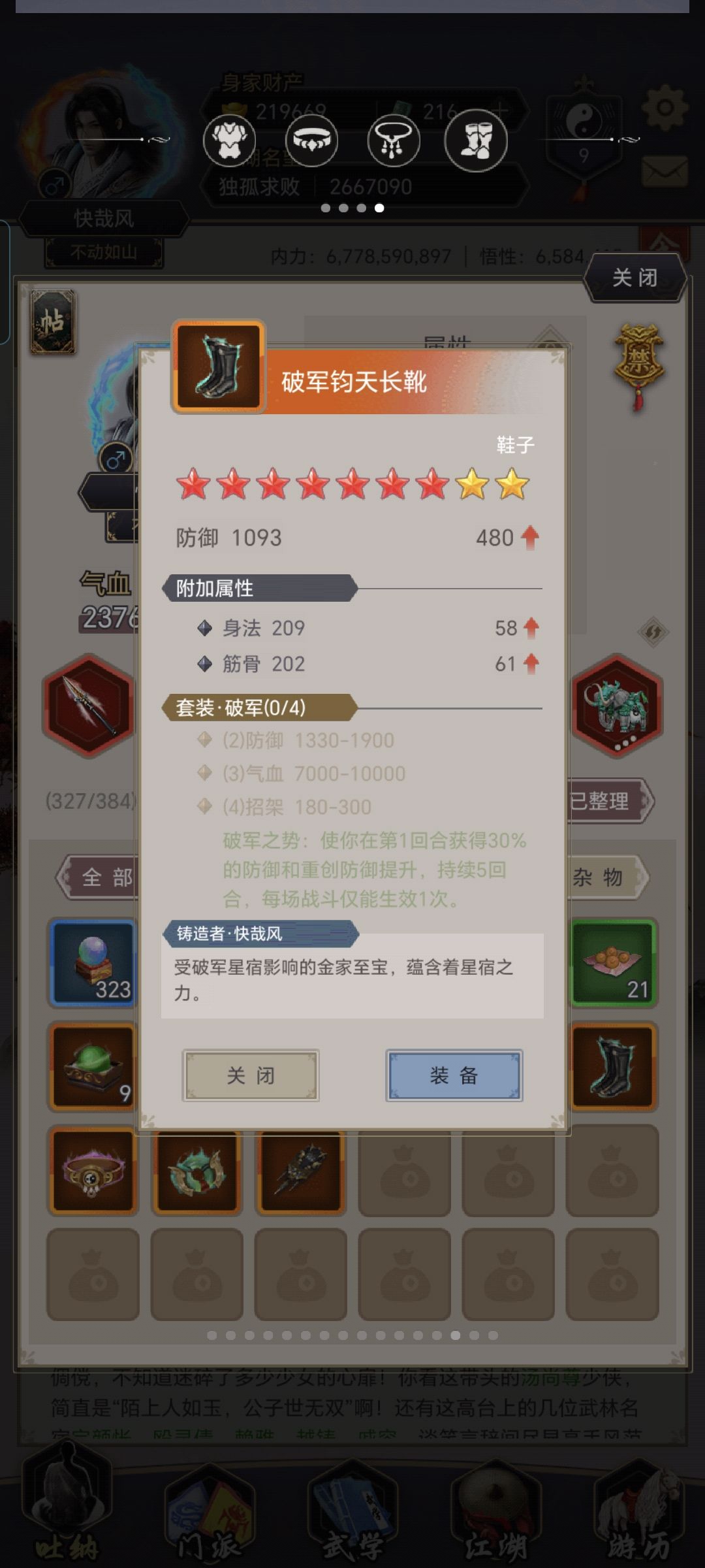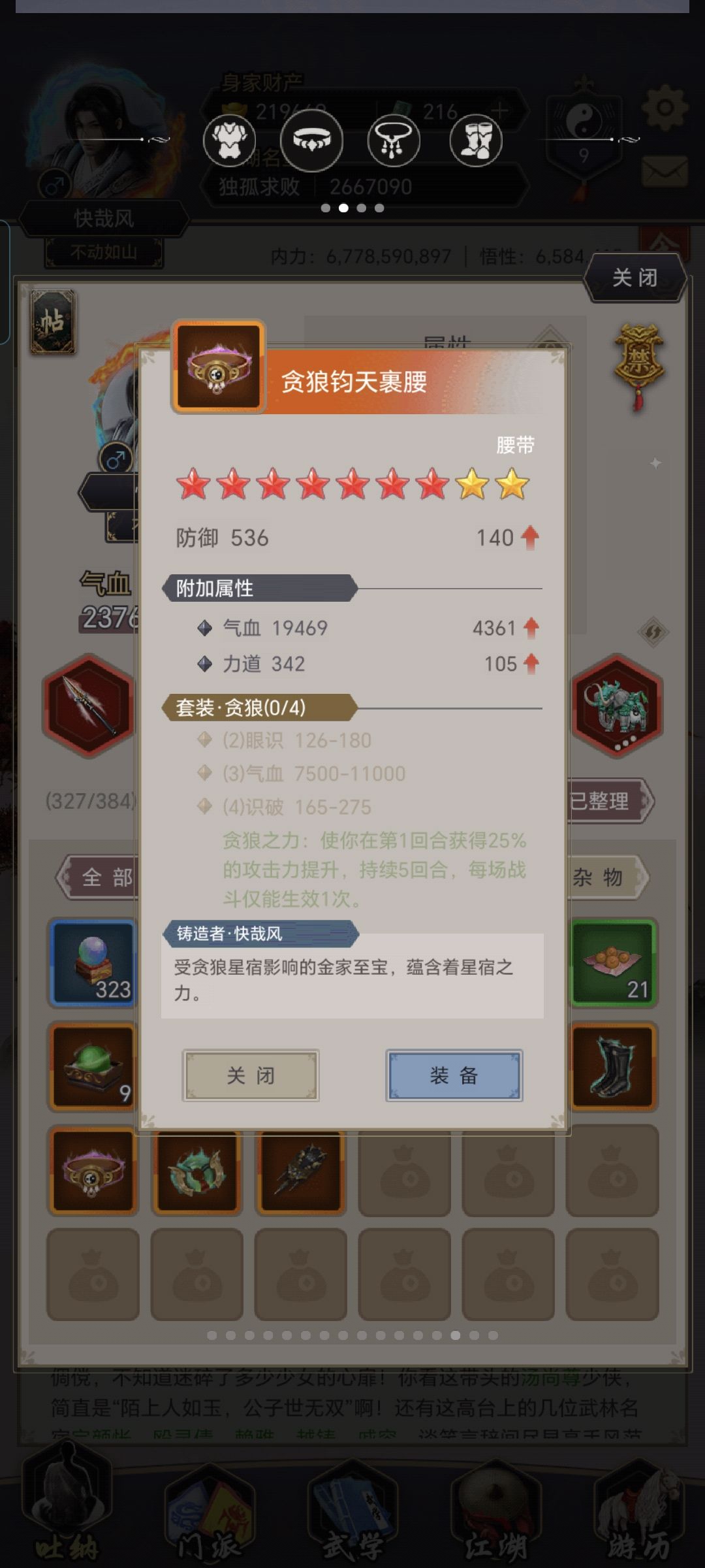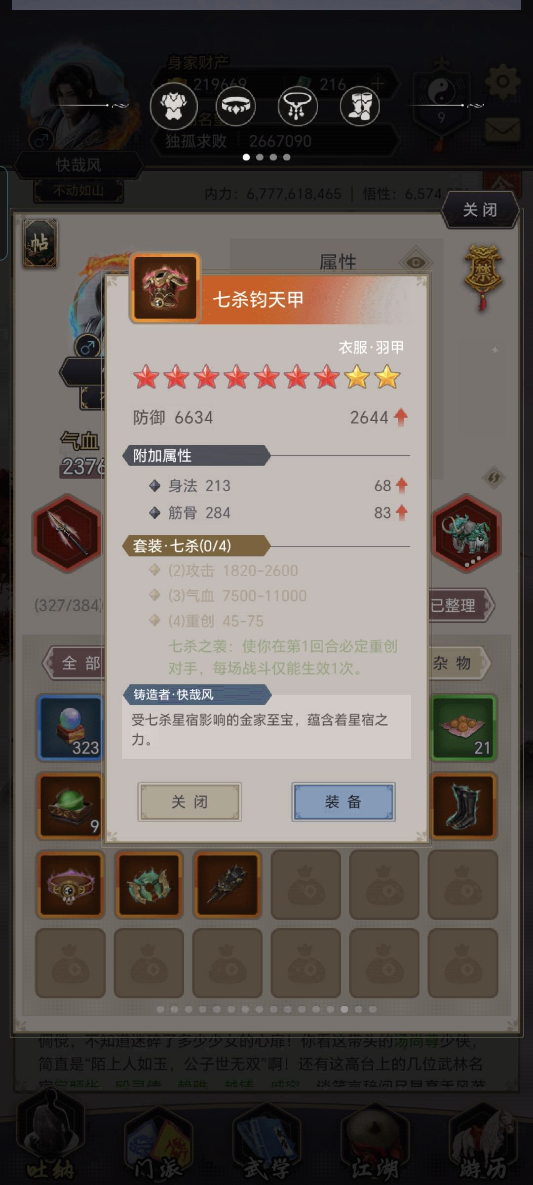 套装做了一个七杀甲。一个贪狼腰带。两点破军一个鞋子一个佩。因为材料不足衣还没锻造出来。然后该咋弄这个套装?现在穿不穿。用材料把这个红星星升满后面咋搞。