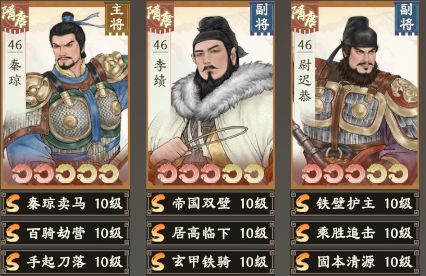 评价:核心战法就是百骑劫营+乘胜追击/嗜血追击,其余灵活搭配即可。带乘胜追击记得注意尉迟恭速度要超过秦琼。该队PVP单挑能力极强,打城战损过高,缺乏持续作战能力。