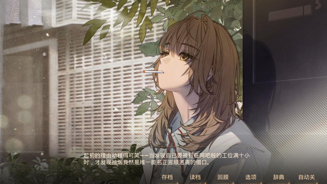 所以团队接下来决定尊重玩家的反馈,弱化游戏里的班味表达,将创作重心向恋爱内容倾斜。后续的剧本打磨中,职场会退居为故事背景,不再大篇幅描摹工作细节,而是通过更加戏剧的方式,来描写职场和恋爱的冲突。针对男性角色引发的争议,团队也做出了调整,决定大幅删减相关戏份。男性角色仅会在故事前期作为冲突工具人登场,后续便会退出主线,整部作品的核心,还是聚焦于成年人之间的恋爱故事,而非职场生存法则。但在部分核心表达上,团队依然有自己的坚持。比如女主抽烟的设定。在压力爆表的工作中,下楼抽支烟喘口气,是北京写字楼下最常见的真实场景。“它反映出女主身上的丧与疲惫,是人物塑造里不可或缺的部分。”当然团队也会不断优化剧情的表达,避免影响到玩家的观感。