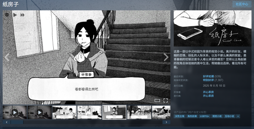 所以尽管百合题材限制了发行商的选择范围,却也让团队找到了明确的核心受众群体。“如果我们不做百合与班味这个组合,可能根本走不到今天这一步,也不会有现在的关注度。”