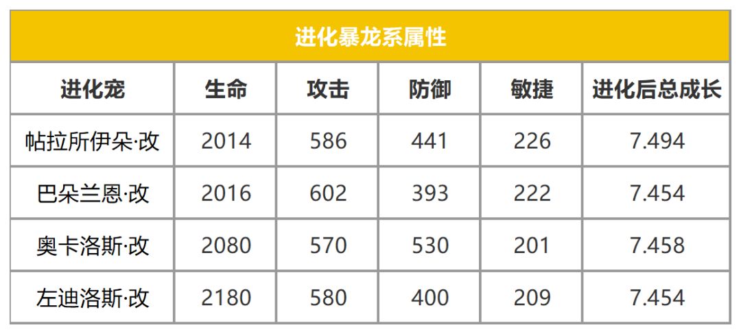 进化暴龙系宠物都将拥有全新成长属性,四维上限全面提升。