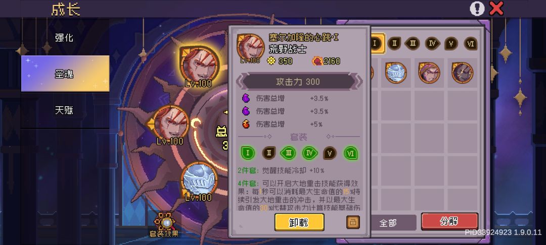 这里说明一下,武器,戒指是必备,头盔可换陈旧骑士(独立近战乘区)、衣服可换符咒衣(加技能伤害)、机核可换时停齿轮、饰品可换红心项链(配合猎户鞋)、鞋子可换猎户鞋(常态增伤)。由于技能伤害可以靠羁绊补,所以衣服后期只推荐神木。