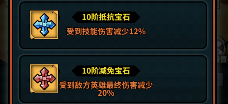 优先攻击宝石,生命宝石,防御宝石,英雄终伤减免宝石,技能减免宝石