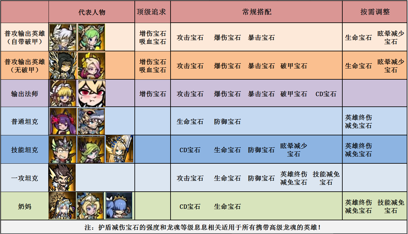 注:护盾减伤宝石的强度和龙魂等级息息相关适用于所有携带高级龙魂的英雄!不在搭配范围内。