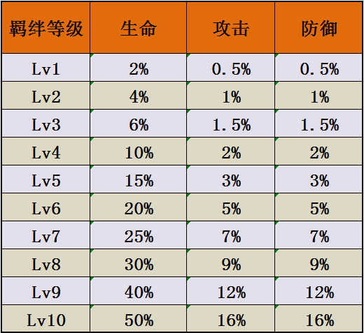 一个英雄所有装备上宝石都达一个等级后,可以获得宝石羁绊,增加英雄三维,具体数值如下: