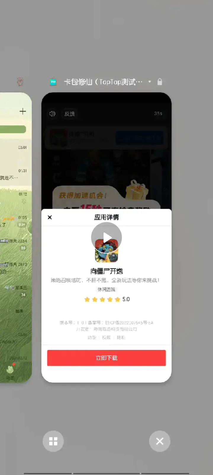 2、会跳出图二,这个时候不用点击下载游戏,直接切屏,如图三保持图三切屏状态15秒(按照提示的观看时间来)