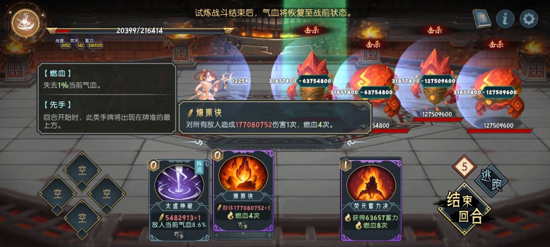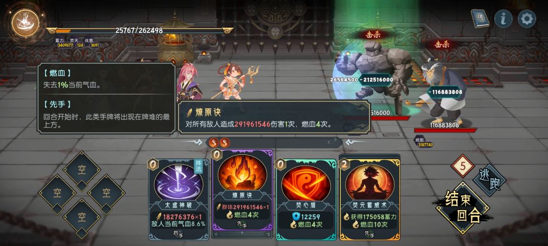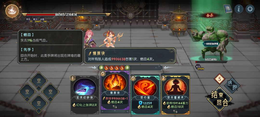 一回合复制1费蓄力,5回合复制百分比战意秒了