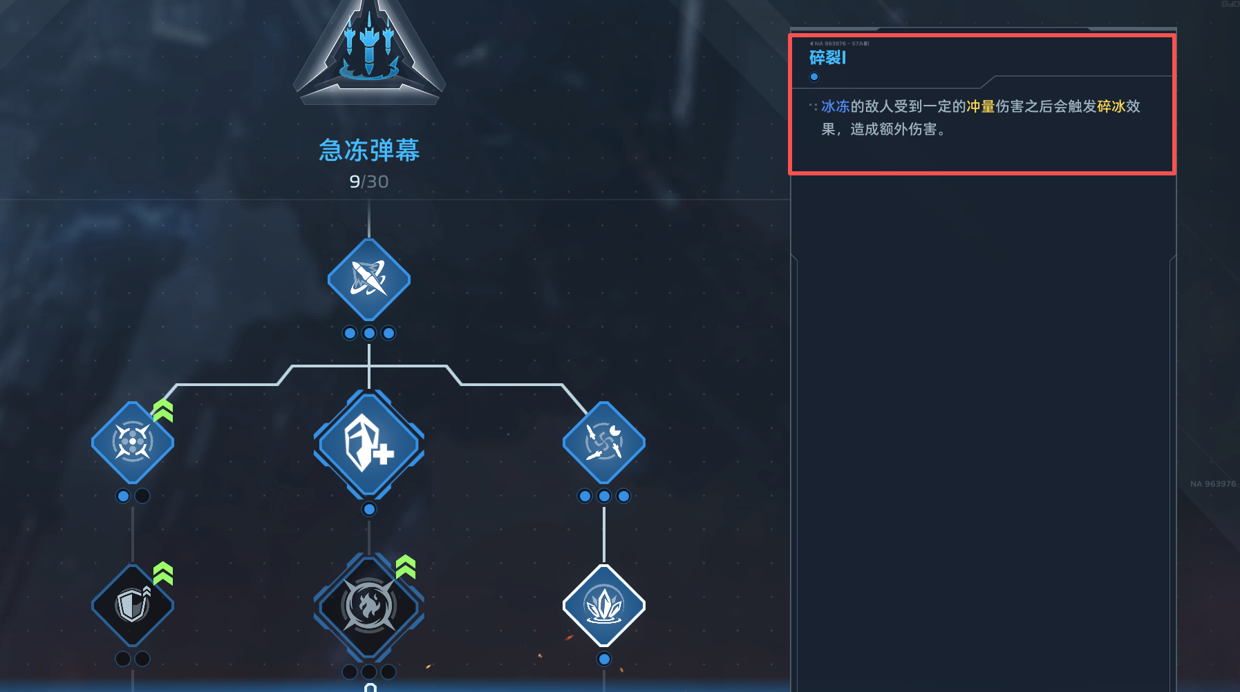 举例:天赋急冻弹幕解锁碎裂I后即可通过攻击被冰冻的敌人触发碎冰效果。