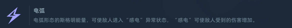 介绍:使用电弧元素的武器或技能命中敌人有概率使敌人进入感电状态,感电可以使敌人受到的伤害增加。