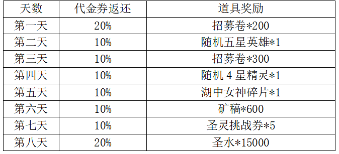 - 充值数据截止时间:在活动开始时将会停止记录充值数据,活动开始后的所有充值均不会产于返利;