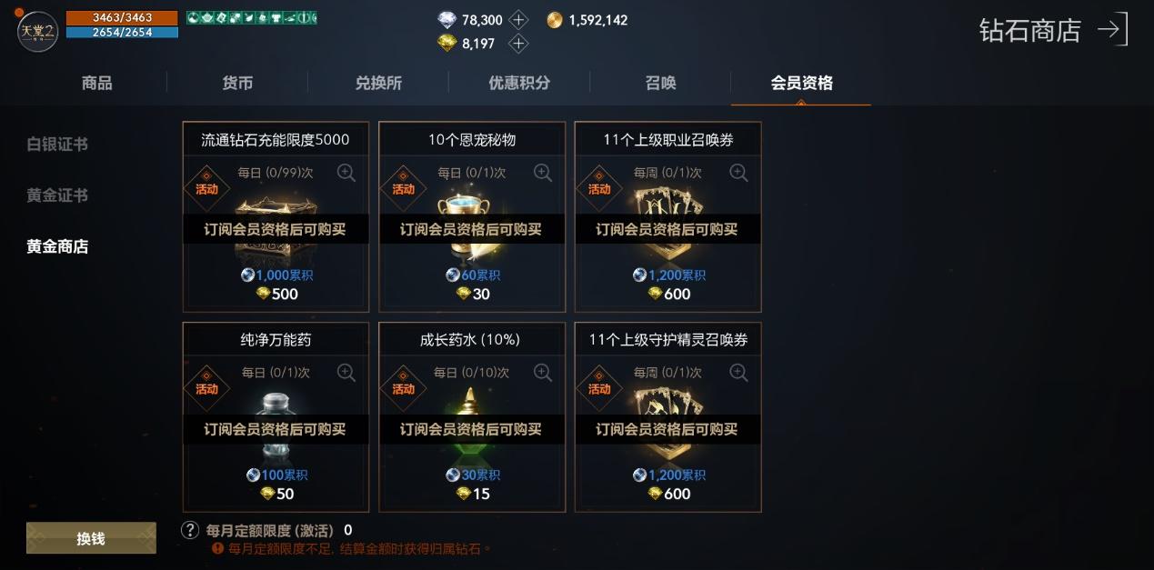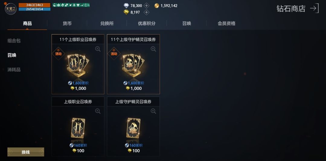 除了上述这些礼包之外,若购买了月卡 - 黄金之证,则每周还可在黄金商店购买一次“上级守护精灵召唤券”组合包,且只需花费600归属钻石,比商品组合包中的价格更低哦!推荐有条件的各位考虑开通~