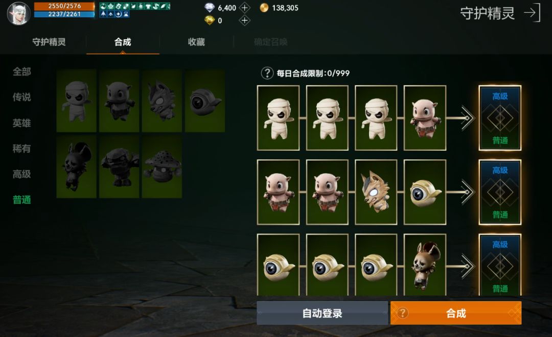 当通过召唤获得的低品质守护精灵数量溢出后,可以通过【守护精灵】-【合成】,将4个低品质守护精灵合成为更高品质的守护精灵啦!