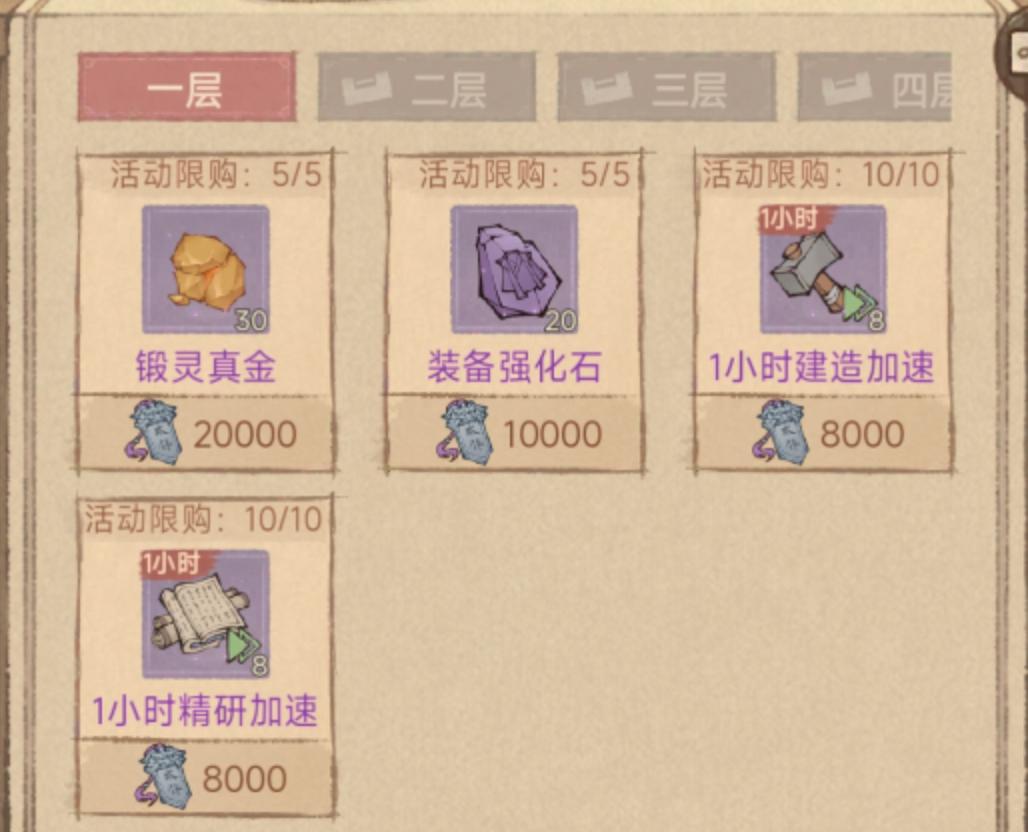 * **第一层(耗16万)**:全部兑换**“1小时城建加速”和“1小时课业加速”**(各80个)。