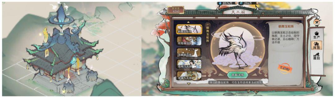 每一个玉符可以选择一个阵图(可切换),镶嵌对应等级、属性的玉符即可激活其阵眼效果。