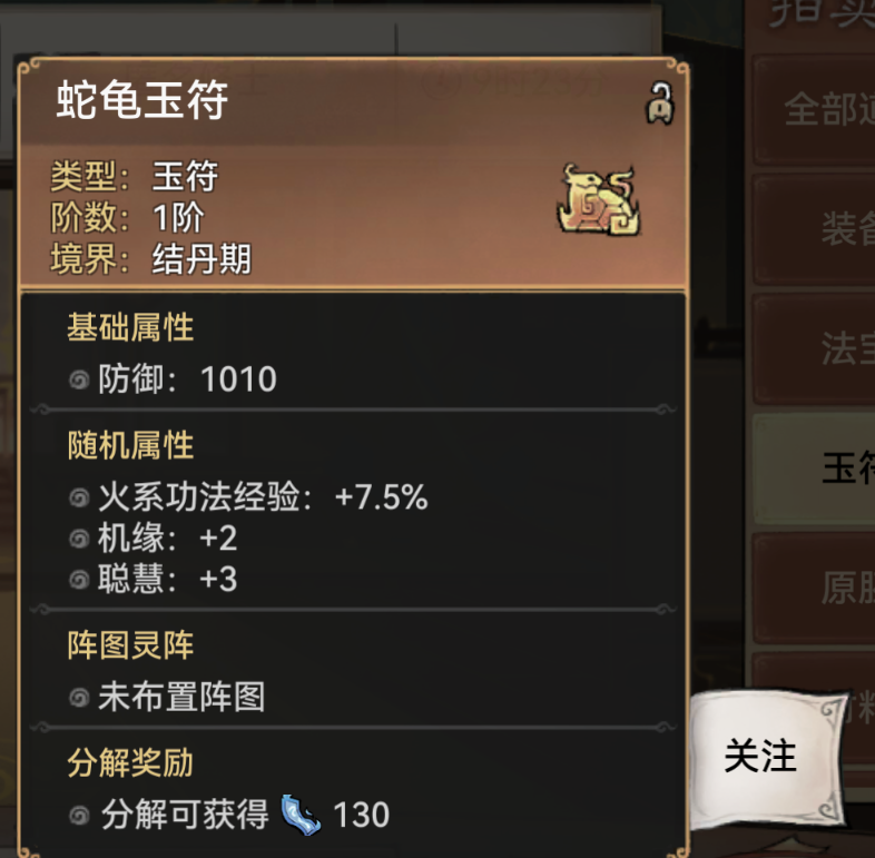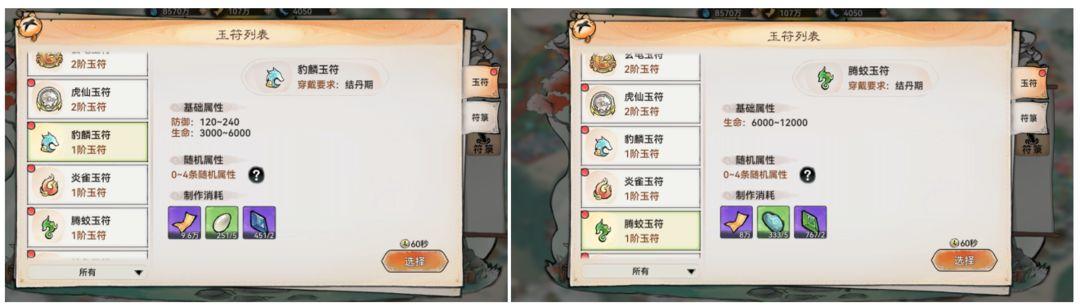 玉符主要功能是作为灵阵的载体,本身的属性加成微乎其微,我们需要关注的只有两点: