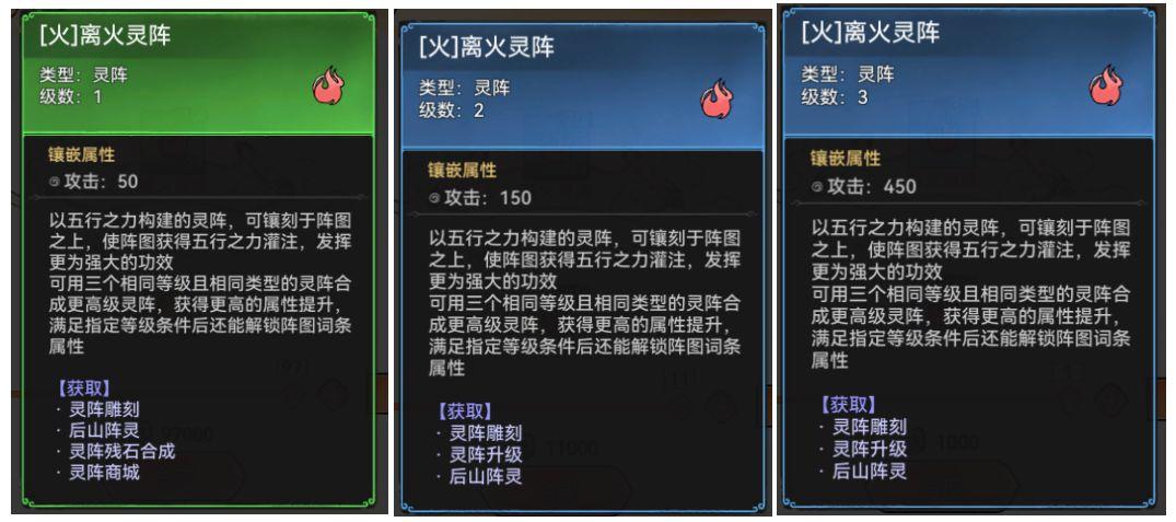 灵阵即相当于别的游戏里的镶嵌宝石,灵阵能给弟子的加成分三部分: