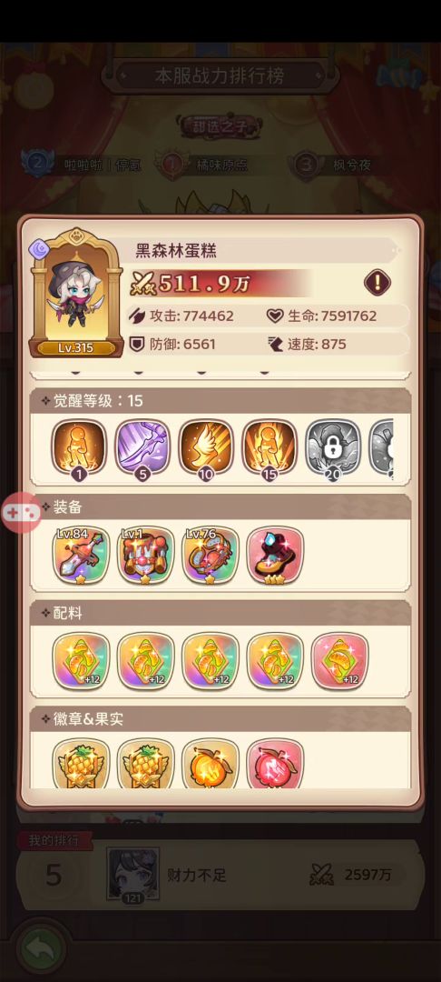 阵容体系以黑蛋糕和马卡龙双速度(马卡龙现在觉醒可以加速了)双全体普攻为核心 徽章搭配连击 嘲讽 驱散 破甲 减疗 杀生 负面状态加控制 拉长战斗回合 (黑蛋糕单独搭配闪避)(追求控制的也可以用控制徽章加强嘲讽概率和马卡龙的石化)