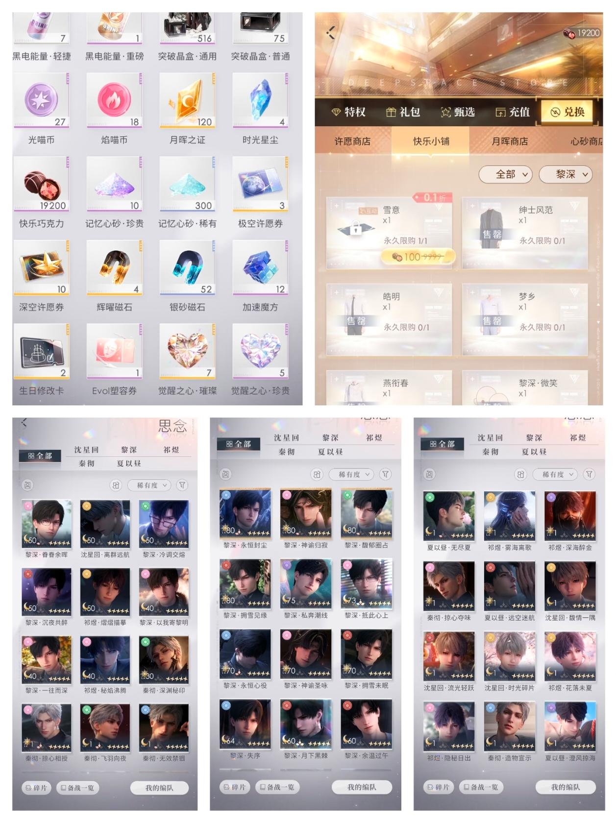 有氪条有粉钻w+,紫钻600(再充点可以拿年卡),高锦无压力,2.0/3.0男主未解锁的单推号,还有9块紧身衣,三日卡齐,周年庆无压力#恋与深空 #黎深