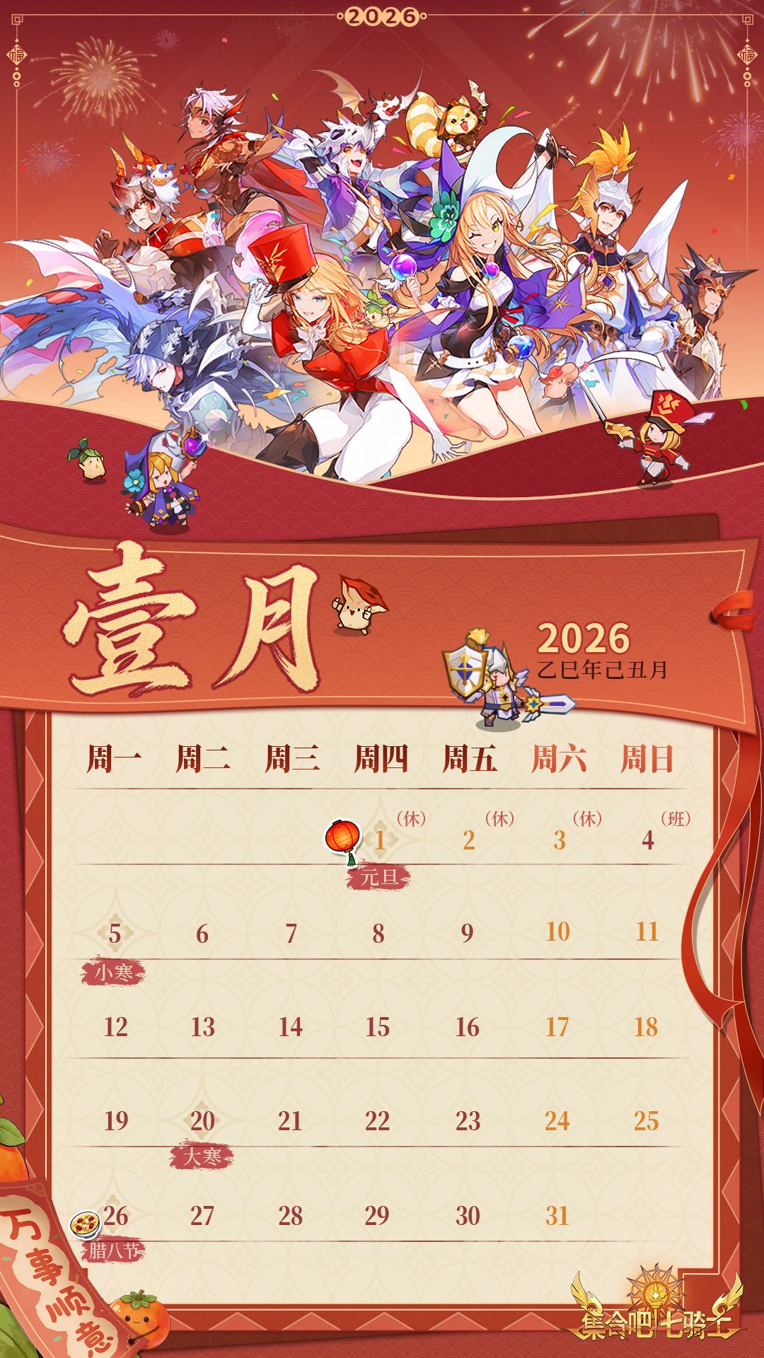 【集合吧七骑士】2026年1月主题月历