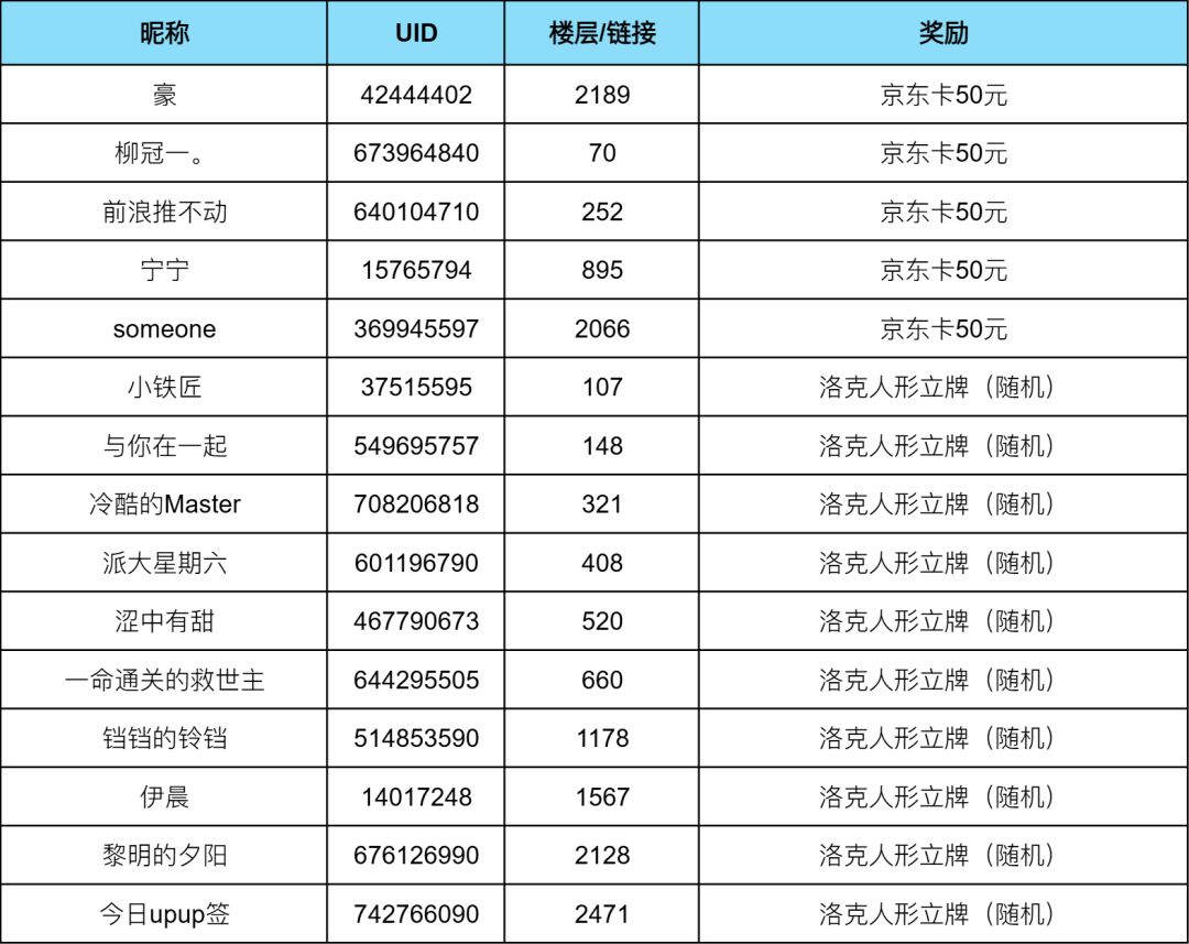 感谢小洛克们的积极参与,本次活动已经结束啦,后续我们还准备了其他活动,小洛克们可以积极参与,下面就一起来看看哪些小洛克获得了活动奖励吧~