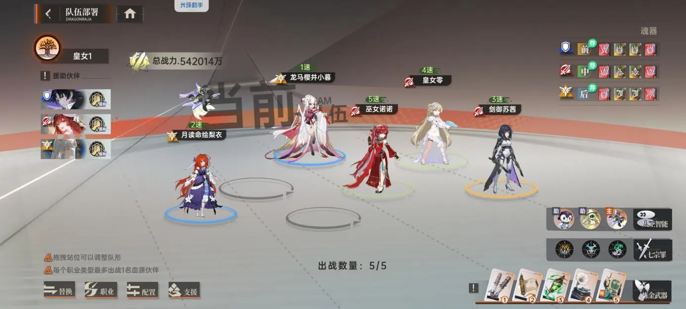 关于龙文方面:选择利维坦与贝奥的混搭是重点倾向攻击输出;也可以选择于防御型龙文将苏茜放置于前排,仅对于没有抽取零号的玩家建议,再就是因为觉醒三会有一个治疗效果,可以选择大蛇套进行一个二次辅助效果。