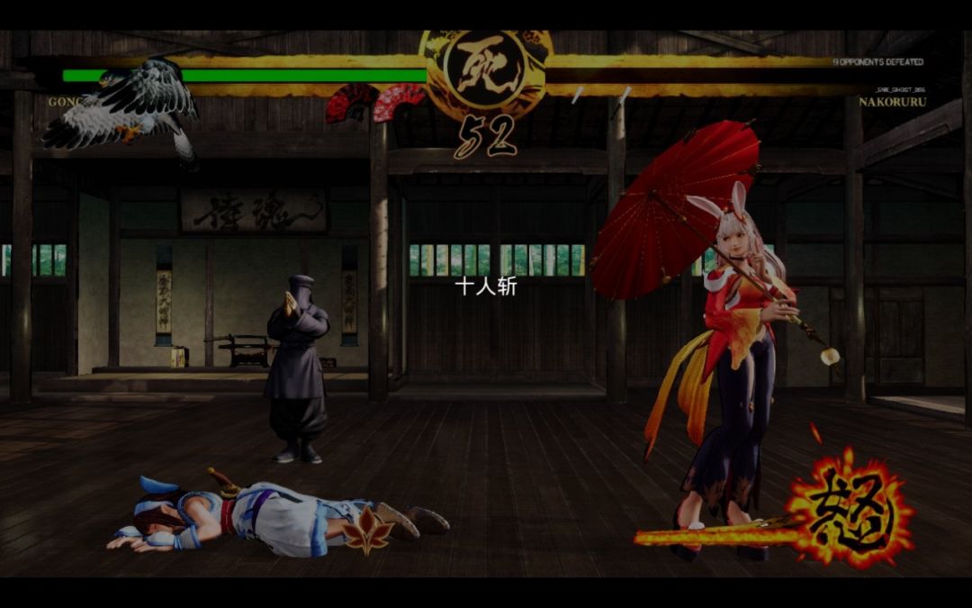 但放在本作发售的2019年,系列已经是明日黄花,就连和MUGEN等圈子一同复兴的“命不久矣三百年”之类的梗也沉寂了,大部分国内玩家了解本作的渠道大概是王者荣耀里联动来的娜可露露和橘右京——前者在大众印象里还经常会被割让给拳皇系列。这固然是因为FTG此时已日益式微、街机厅多为盗版、以及SNK自身也逐渐过气,但是还有一个不可不提的原因——侍魂系列自己也中断了。