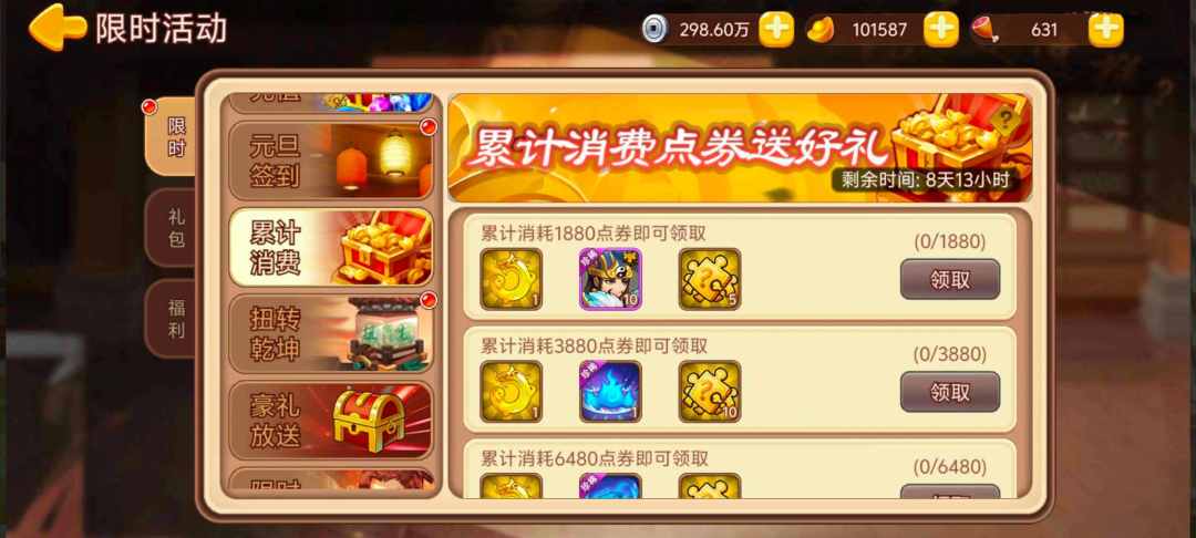 活动内容:活动期间累计消费至指定额度,即可领取奖励。