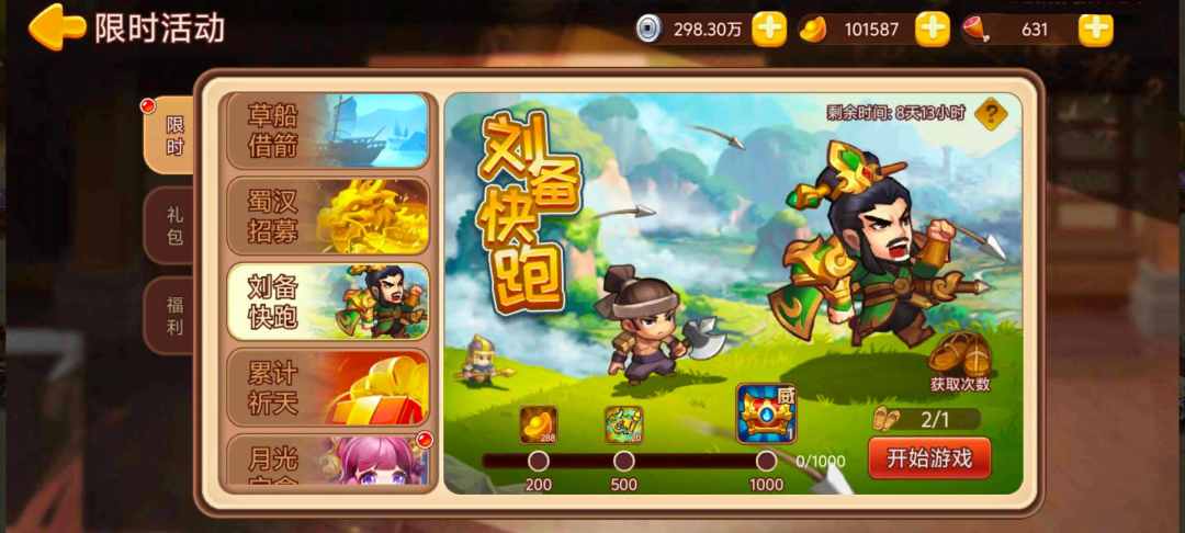 活动内容:活动期间收集草鞋参与刘备快跑小游戏,积累积分获得奖励。