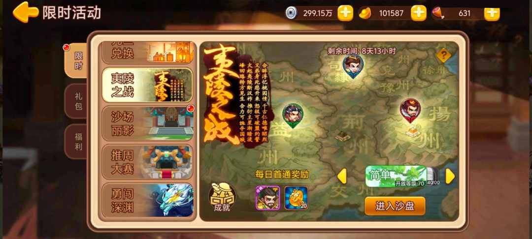活动内容:活动期间开放“夷陵之战”副本,每日首通获得奖励。