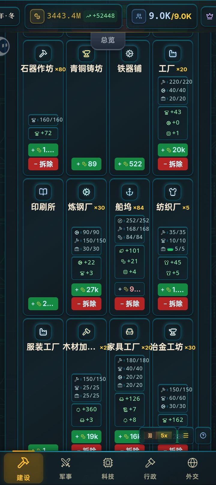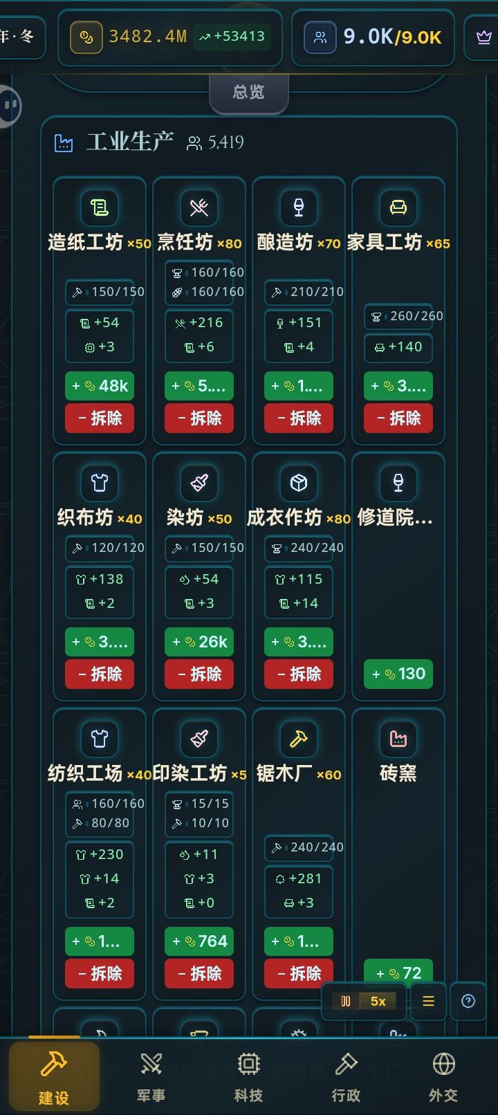 4.砖块,砖块儿重要性非常低,保持一定的产量,封建时代之前,价格维持在1.5左右,让砖窑工人吃口饭,当然你也可以把砖块儿价格压下来,因为很好压,然后做进出口贸易,收5%左右的关税