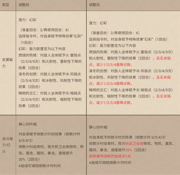 对本期夕海的旅人“游侠莉妮特”进行了性能调整,详情如下: