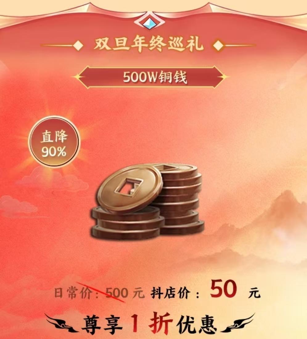 铜钱到后期依然很缺,现在合神兽、星符、装备又开了100级,武将升阶、神兵升阶都是铜钱的大缺口,日常获得的又很少,50元可以考虑