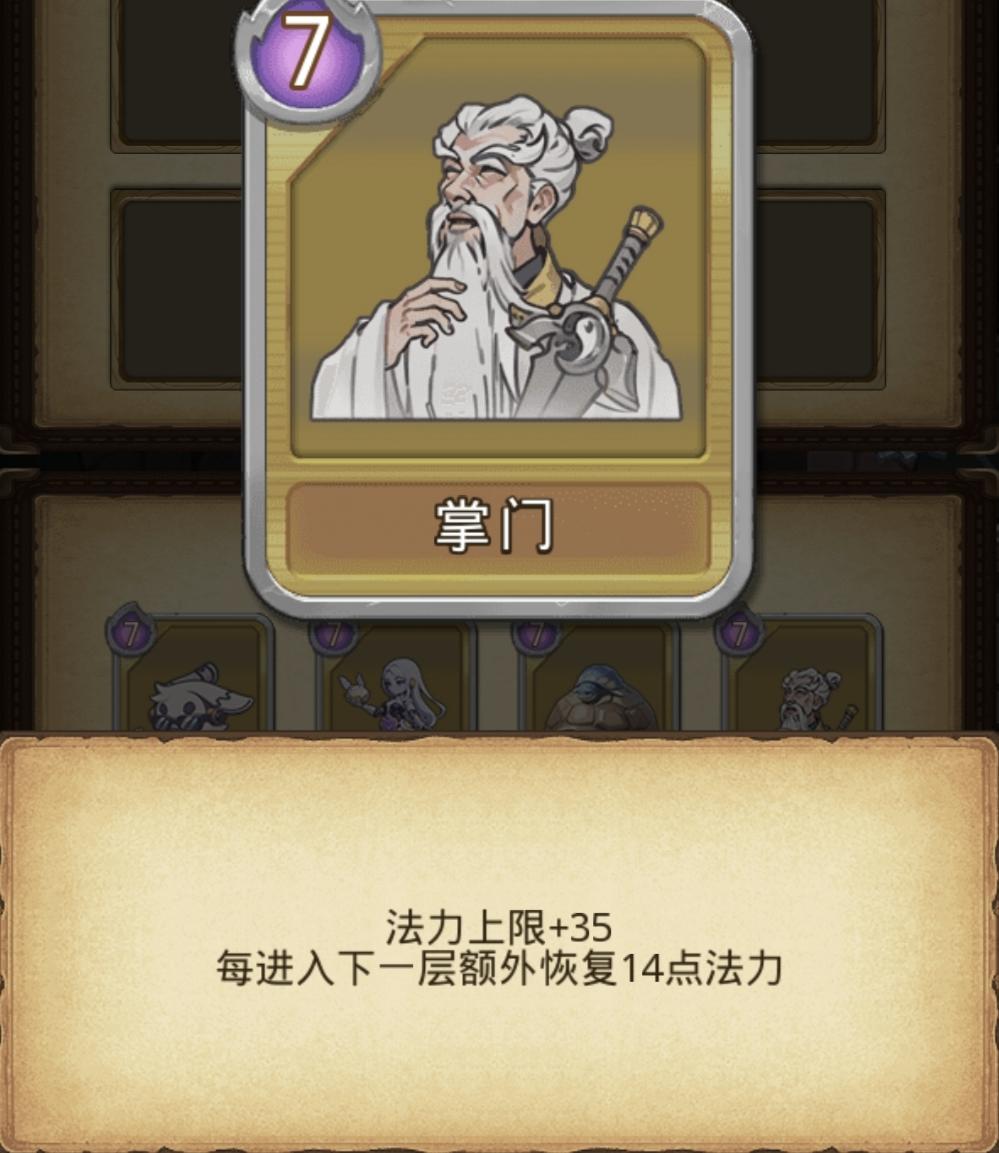 10.掌门(前期有用):7级+35法力上限,下一层回复14法力