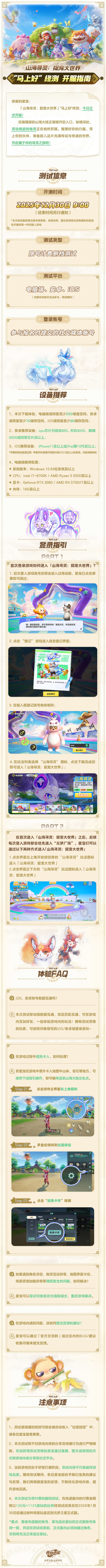 《元梦之星》「山海寻灵:捉宠大世界」“马上好”终测现已正式开启,本次测试名额有限,先到先得!邀请各位星宝一同踏上这段充满惊喜与未知的捉宠探秘之旅!