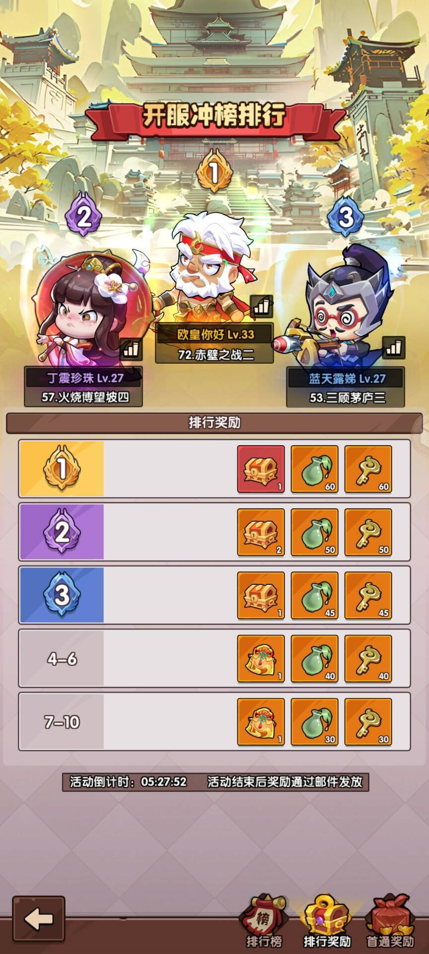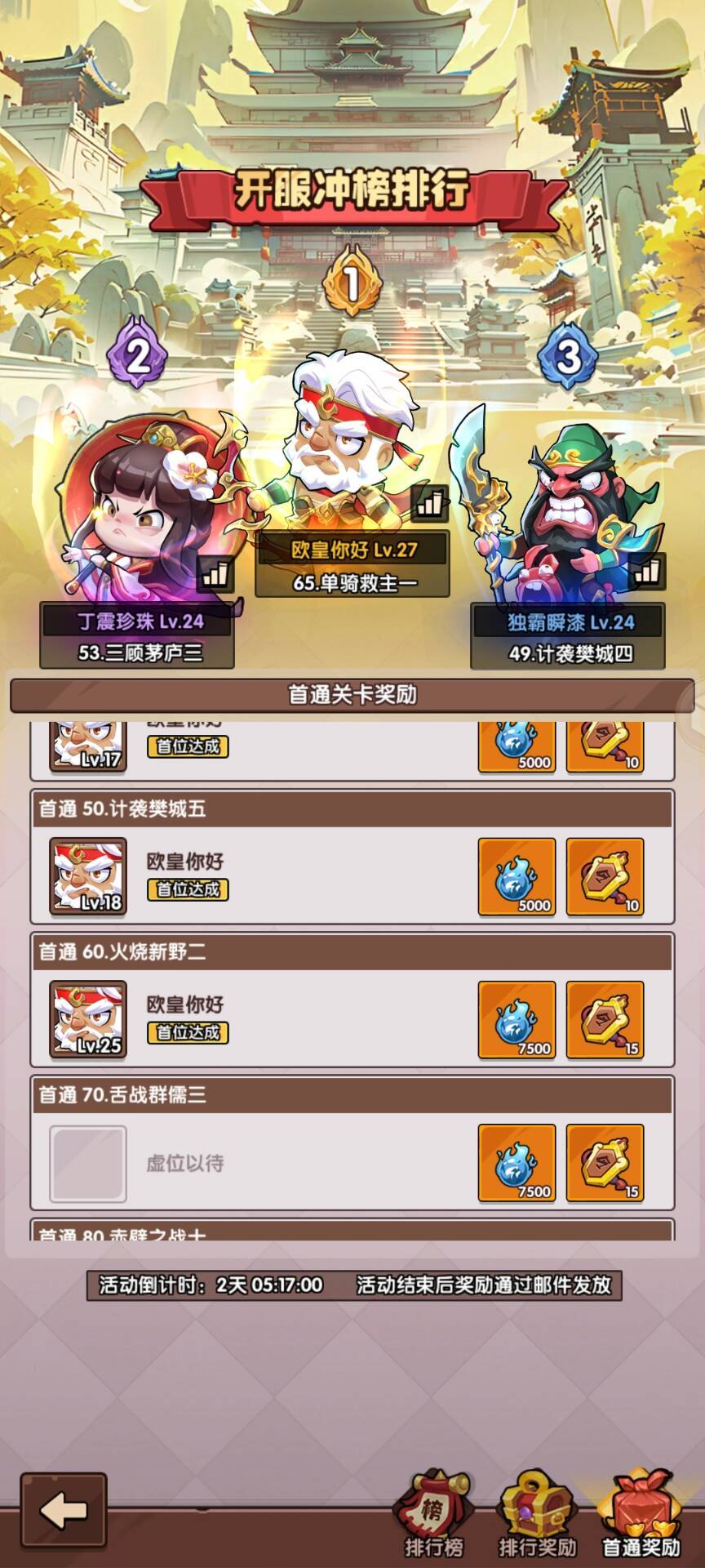 关卡排行奖励